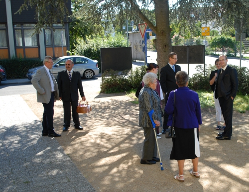 Um 16:53h habe ich mich in Richtung Auto bewegt. Natürlich mit der Brautjungfer, denn es musste doch jemand die Schleppe tragen. Dann sind wir zur Kirche gefahren, was wirklich nur 5-6 Minuten gedauert hat. Mir ging's blendet und ich habe mich einfach gefreut.