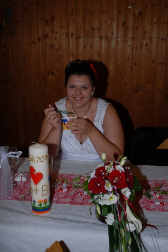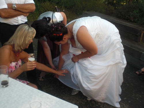 Zwischen den Gesprächen erhielt ich immer wieder Komplimente zu meinem Aussehen und meinem Kleid. Ich musste auch zwei Damen erläutern, aus wie viel Schichten das Kleid besteht bzw. wie der Reifrock aussieht. Auch fanden es viele sehr schick, dass ich nicht die "Standard"-Braut mit Schleier war. Es waren viele anfangs überrascht, aber fanden es im Endeffekt ganz toll, da so ja die schöne Hochsteckfrisur zur Geltung kam.