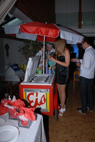 Schatzi hatte absolut keinen Hunger und ist nur formhalber zur Eröffnung des Buffets mit mir vor gegangen. Ich hab mir dann allerdings auch nur eine Mini-Portion auf meinen Teller gemacht, da ich auch keinen all zu großen Hunger verspürte. Während sich eine Schlange bildete, kam auch der Eiswagen an und die Augen aller kleinen und großen Kinder wurden immer größer, was das den sei.