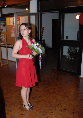 Schön, dass meine Brautjungfer ihn gefangen hat. War ja von mir auch so gewollt. Aber wie man auch sieht, wollte den Strauß sonst niemand. Letztes Jahr bei der Hochzeit meines Bruders haben wir beide uns um den Strauß gekämpft. Da hatte ich ihn gefangen. Nun hatte sie das Glück. Vielleicht läuten nächstes Jahr ja wirklich die Hochzeitsglocken bei ihr und ihrem Freund.