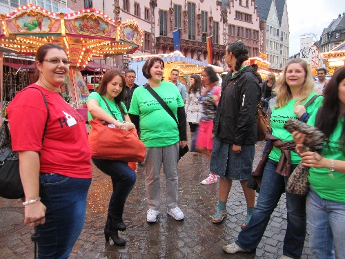 Aufgabe 3: Die war wirklich sehr schwer…. Ich musste jemanden finden, der uns allen (wir waren zu acht!) etwas ausgibt. Wir sind das Mainufer hoch und wieder runter, doch das stellte sich wirklich als wahnsinnig schwere Aufgabe dar, da wir so viele Mädels waren…. Also habe ich meinen ersten Joker eingesetzt… ich mache diese Aufgabe NICHT. Ich hatte nämlich 3 Joker, die ich in Anspruch nehmen durfte.
