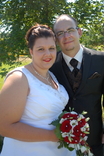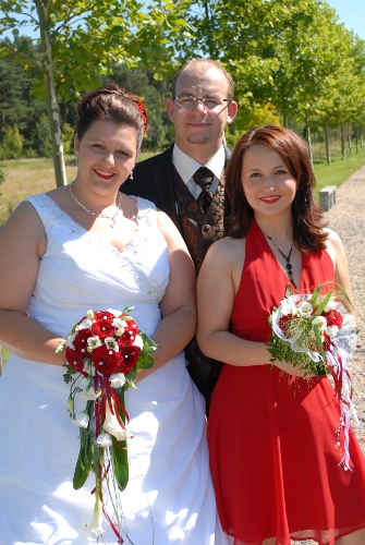So Schatzi, die Brautjungfer und der Fotograf waren da. Ich war fertig angekleidet. Perfekt… Mama war schon dabei, den Brautstrauß "trocken" zu legen, ebenso wie das Sträußchen für die Brautjungfer. Nun hieß es auf zum Paar-Shooting.